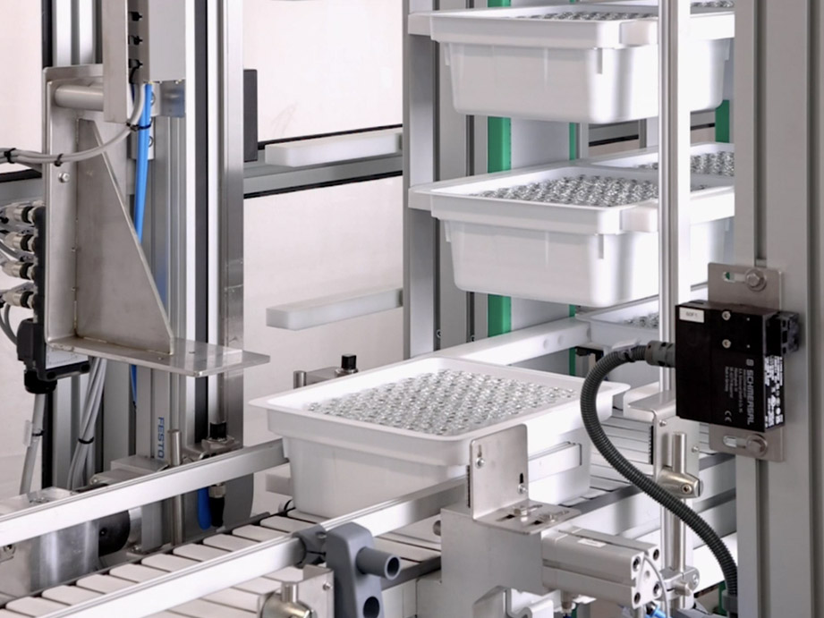 Add a high level of autonomy and simultaneously reduce wasted product to your visual inspection or assembly process. The high-capacity buffer and conveyance system allows tubs and trays to be processed automatically for unloading and reloading, reducing the need for operator input.